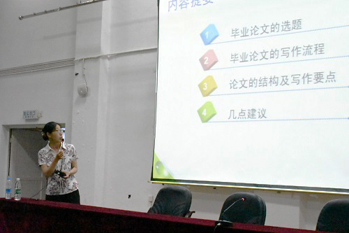 云博士在会上做了专题讲座《经管学院本科毕业论文写作指导》,通过PPT展示,对本科论文的基本要求、论文基本格式内容和撰写论文的技巧等方面进行了具体细致的介绍。让与会学生对毕业论文有了更直接的认识和了解。
