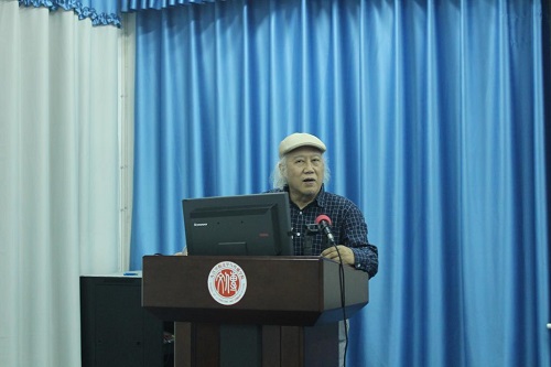 余教授从自己学习书法的经历开始谈起,讲述了他对书法的心得体会。接着,余老先生又用幽默风趣的语言从书法的概念讲到书法与相关学科的关系再讲到书法的学习,他强调,书法工具的选择对书法的学习起着重要作用。比如,选择一本自己喜欢又容易上手的经典作品中的字帖,既有利于书法的练习,也有利于同学们培养对书法的兴趣喜爱。老先生认为,临帖是学习书法的重要方式,容易掌握字帖的笔意。临帖可以从对临到背临再到意临,每一笔每一划都要做到“笔笔见先人,字字有来历”。